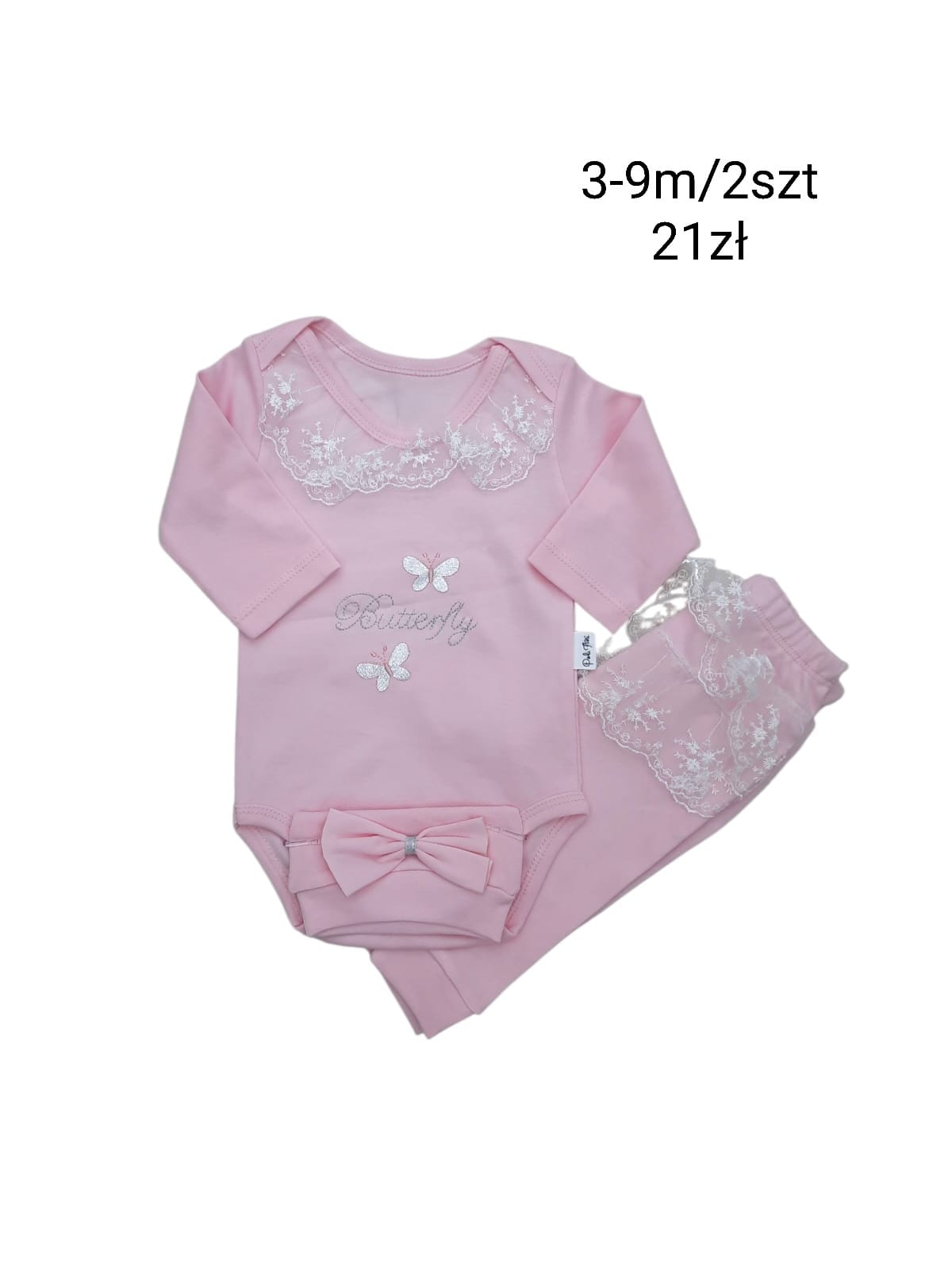 Komplet niemowlęcy dla dziewczynki z motylkami - obrazek 2