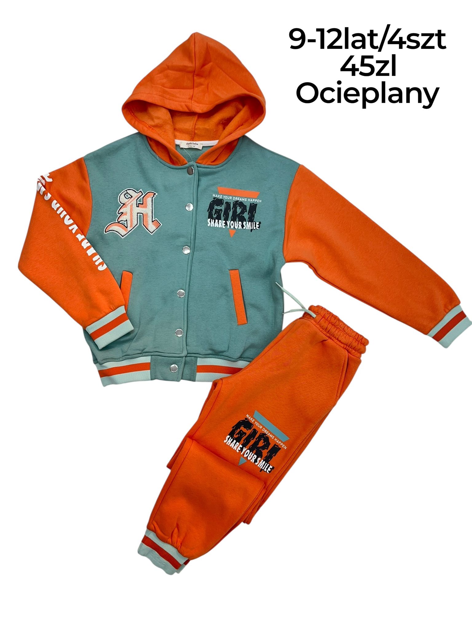 Ocieplany dres dziewczęcy z kapturem