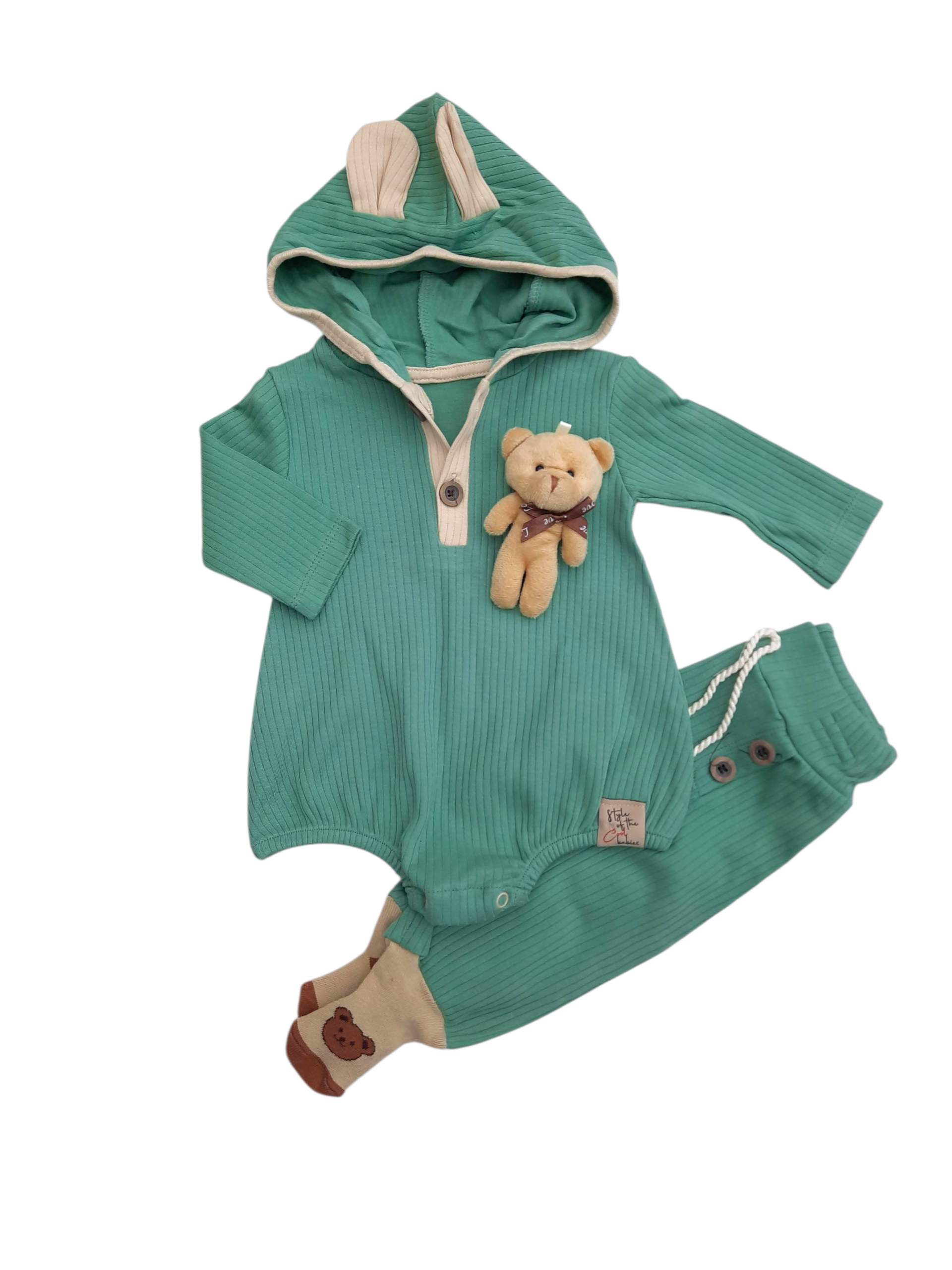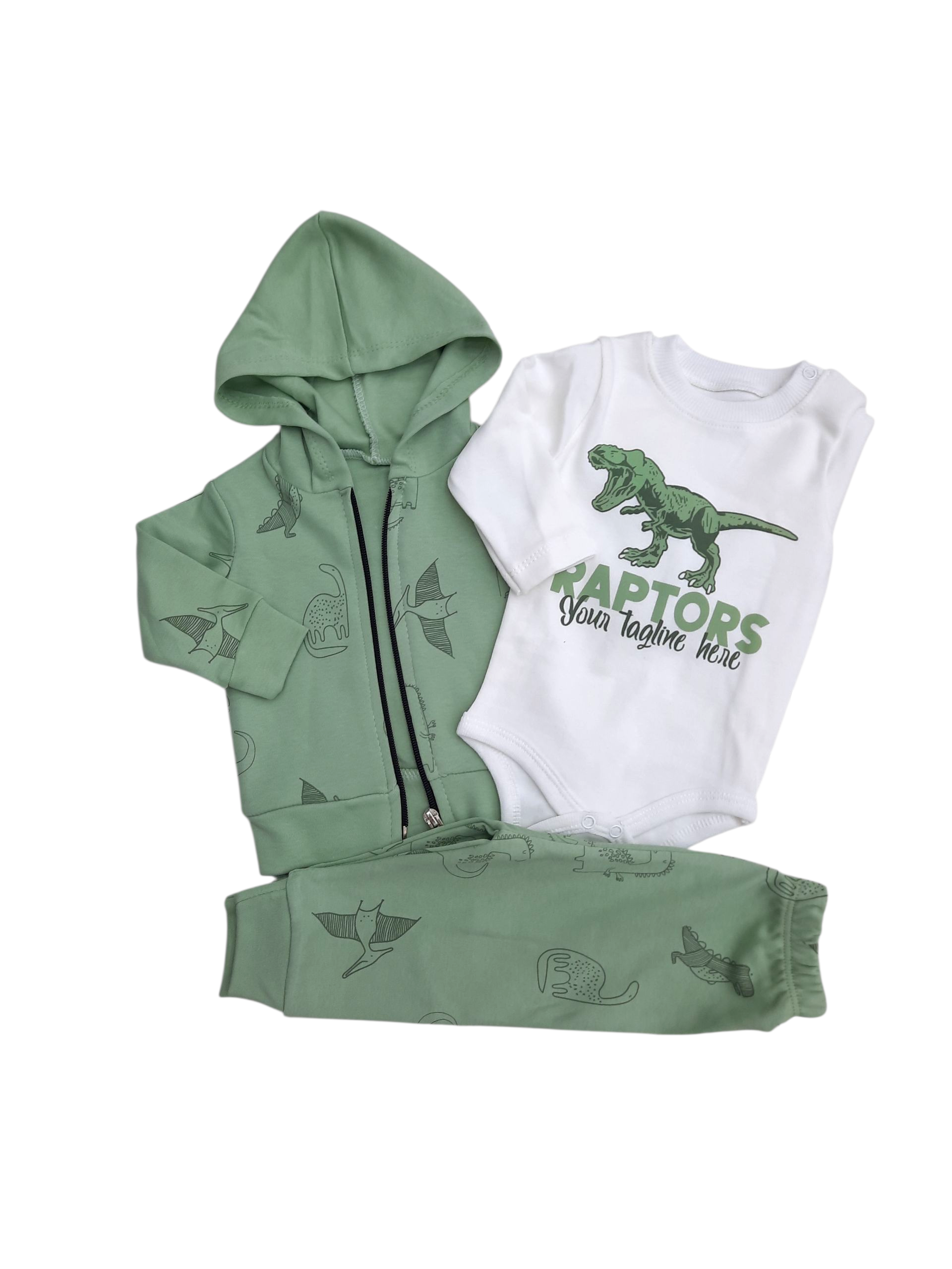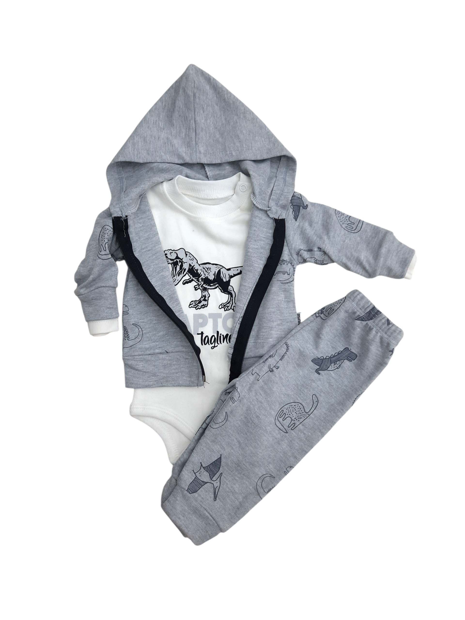 Komplet chłopięcy 3-częściowy z kapturem dinozaur