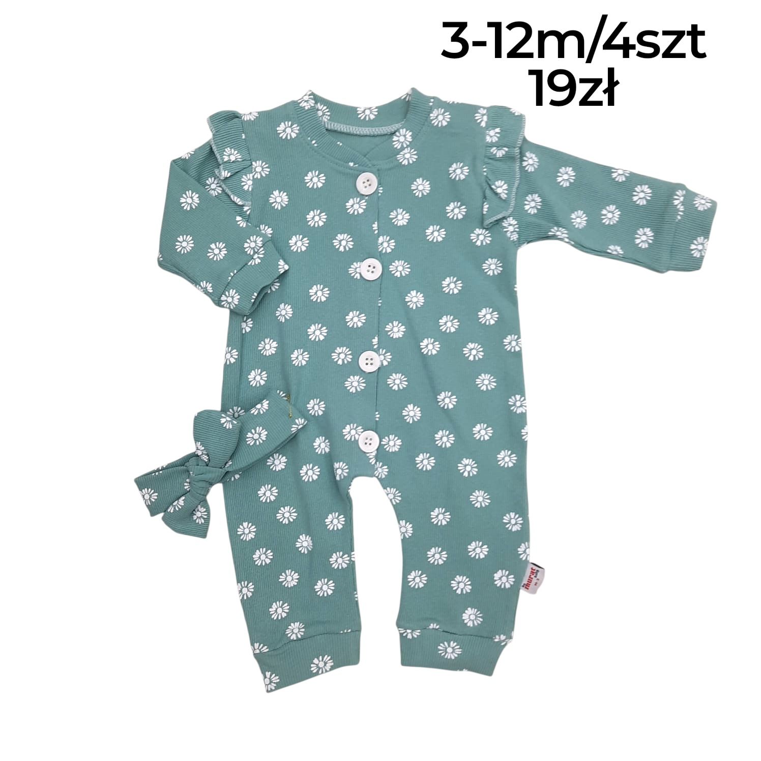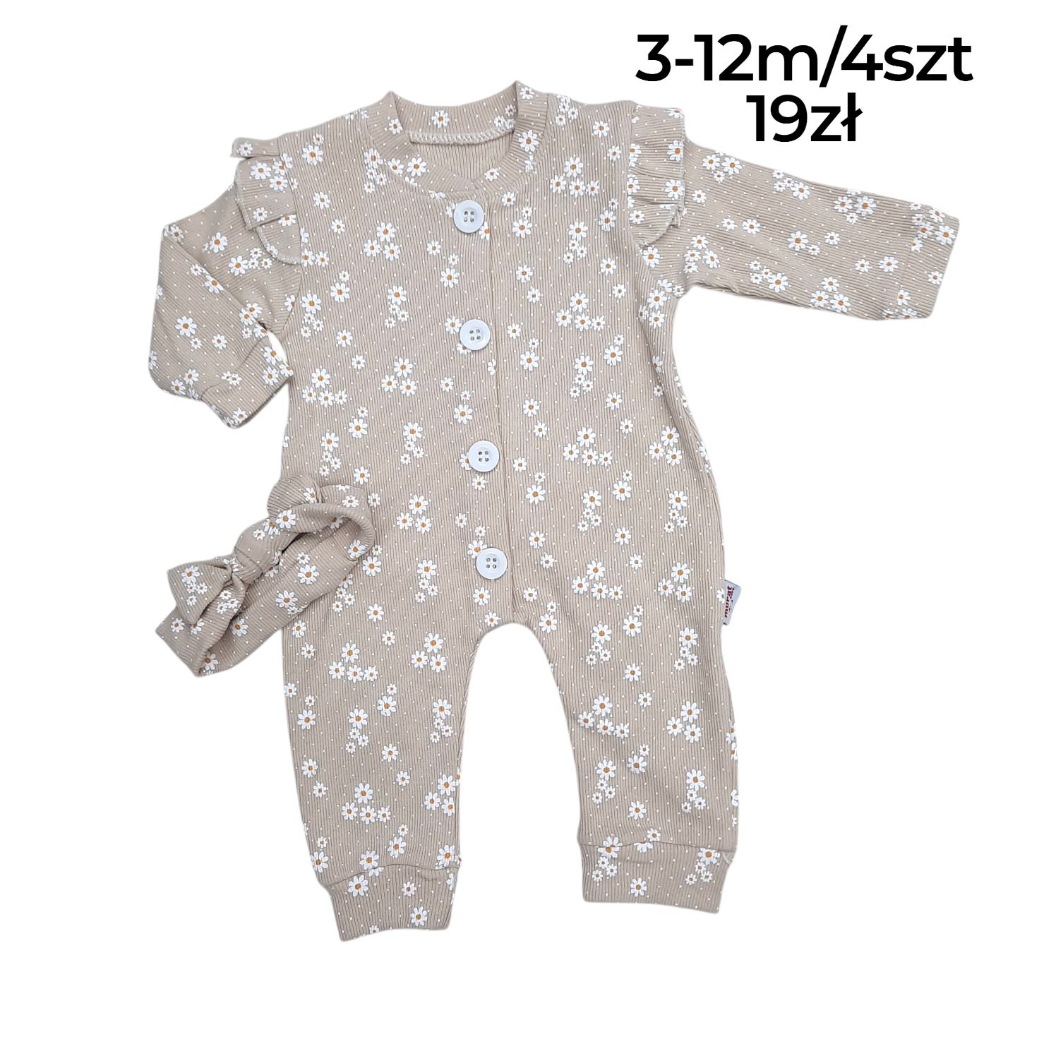 Prążkowany rampers z opaską w stokrotki