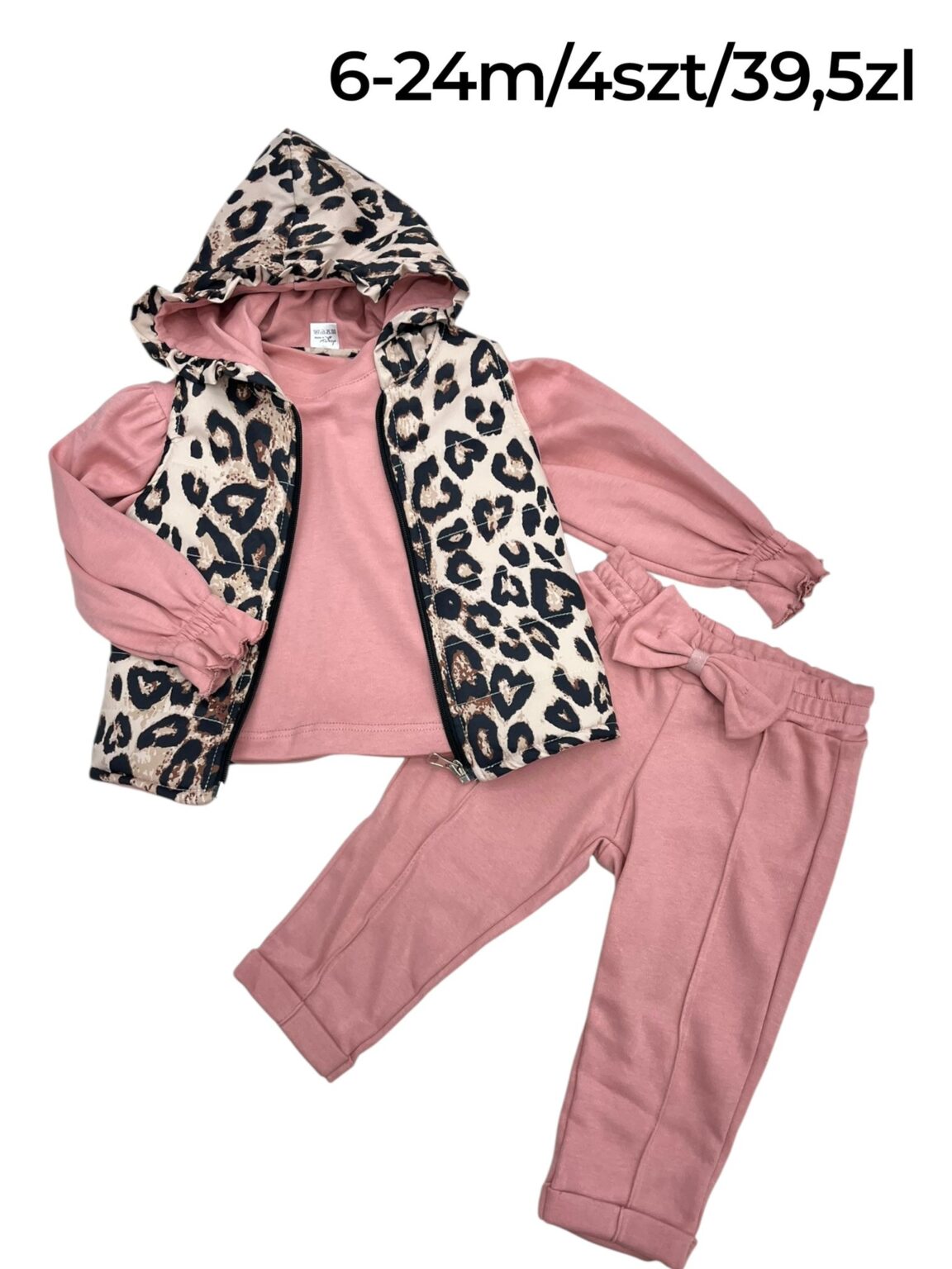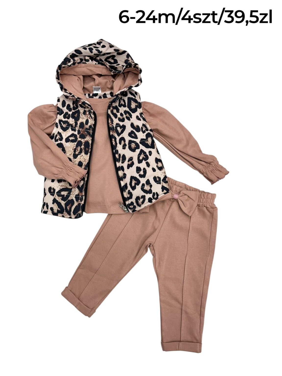 Dziewczęcy komplet 3-częściowy z kamizelką w panterkę