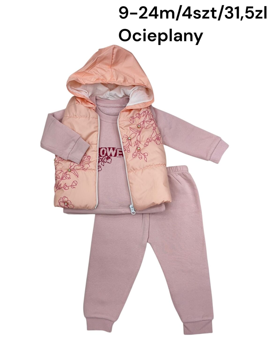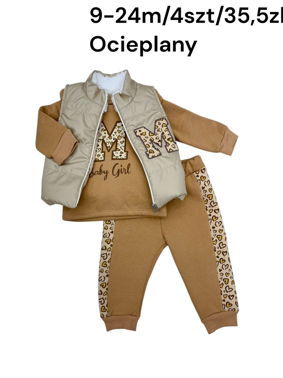 Ocieplany komplet dziewczęcy 3-częściowy z kamizelką