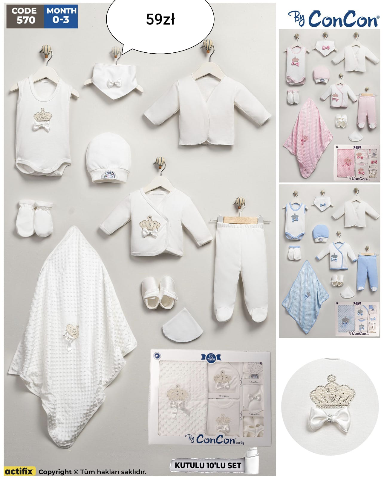 Zestaw niemowlęcy 10-częściowy z koroną
